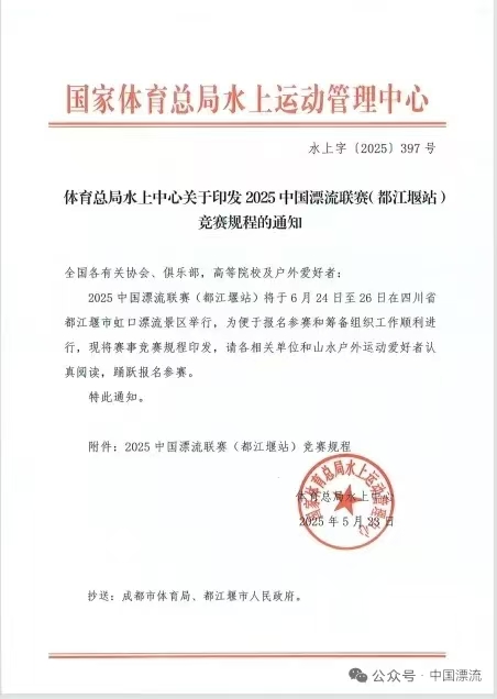 2025年全民健身漂流大赛(都江堰站)即将于9月14日开赛