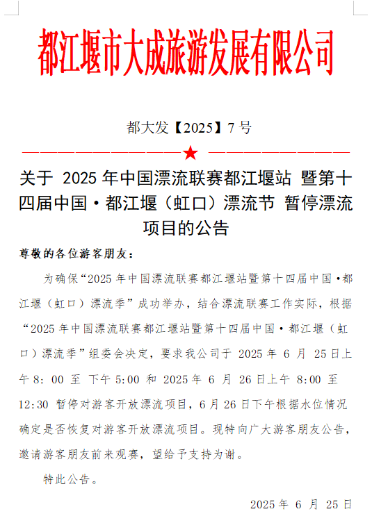 激浪奔腾十四载 体旅融合谱新篇 2025年中国漂流联赛(都江堰站)暨第十四届 中国·都江堰(虹口)漂流季盛大开幕