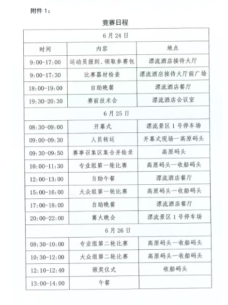 (一)专业组比赛器材及装备(双人艇、单叶桨、国标救生头盔)可由组委会提供,也可参赛者自备。衣、